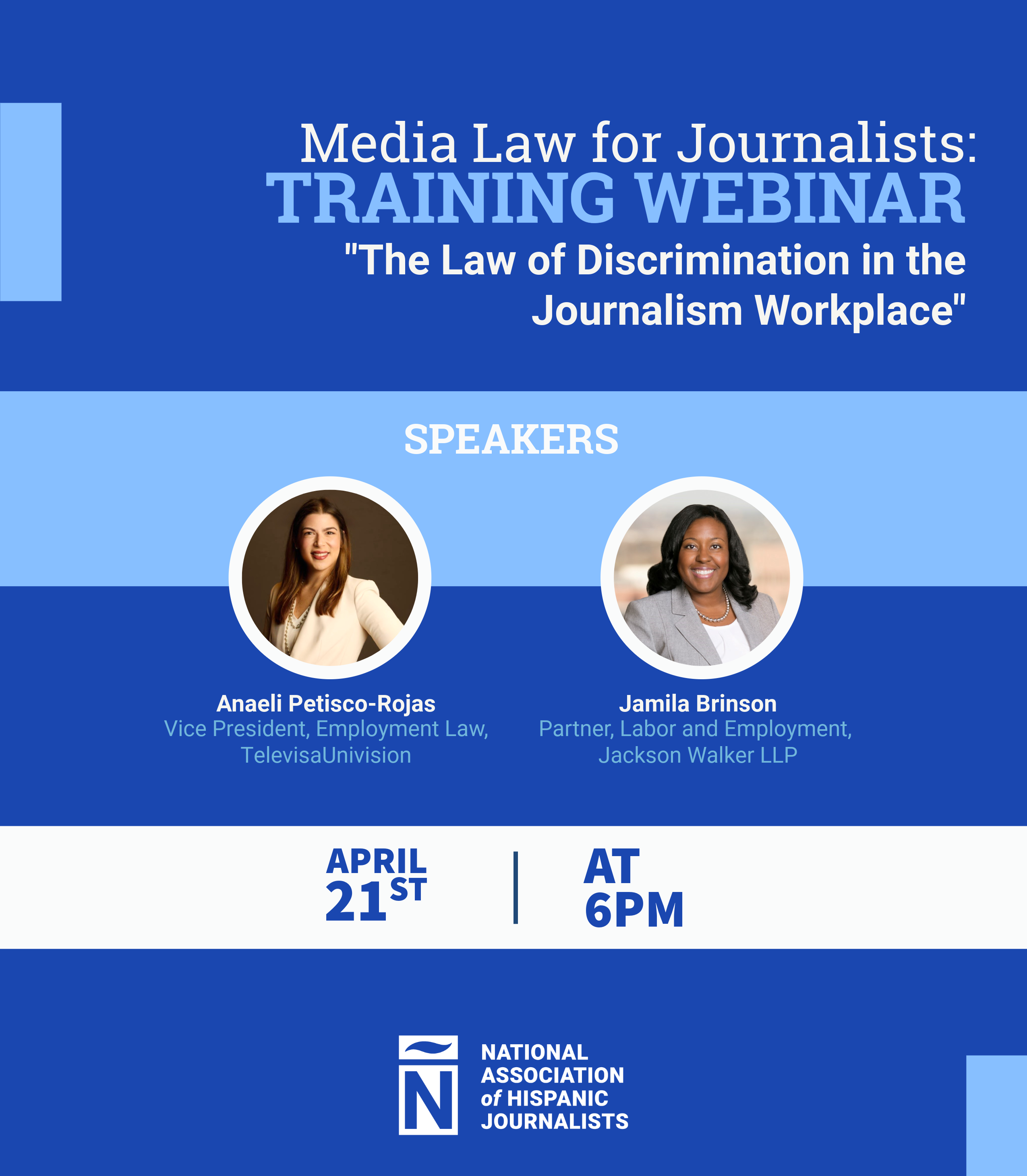 NAHJ creates virtual and in-person training sessions, panels and network opportunities exclusively designed to benefit NAHJ members nationwide and internationally. Our sessions are open to NAHJ members only (unless specified). Join NAHJ today so you don’t miss any of these opportunities and share the word with your colleagues.
